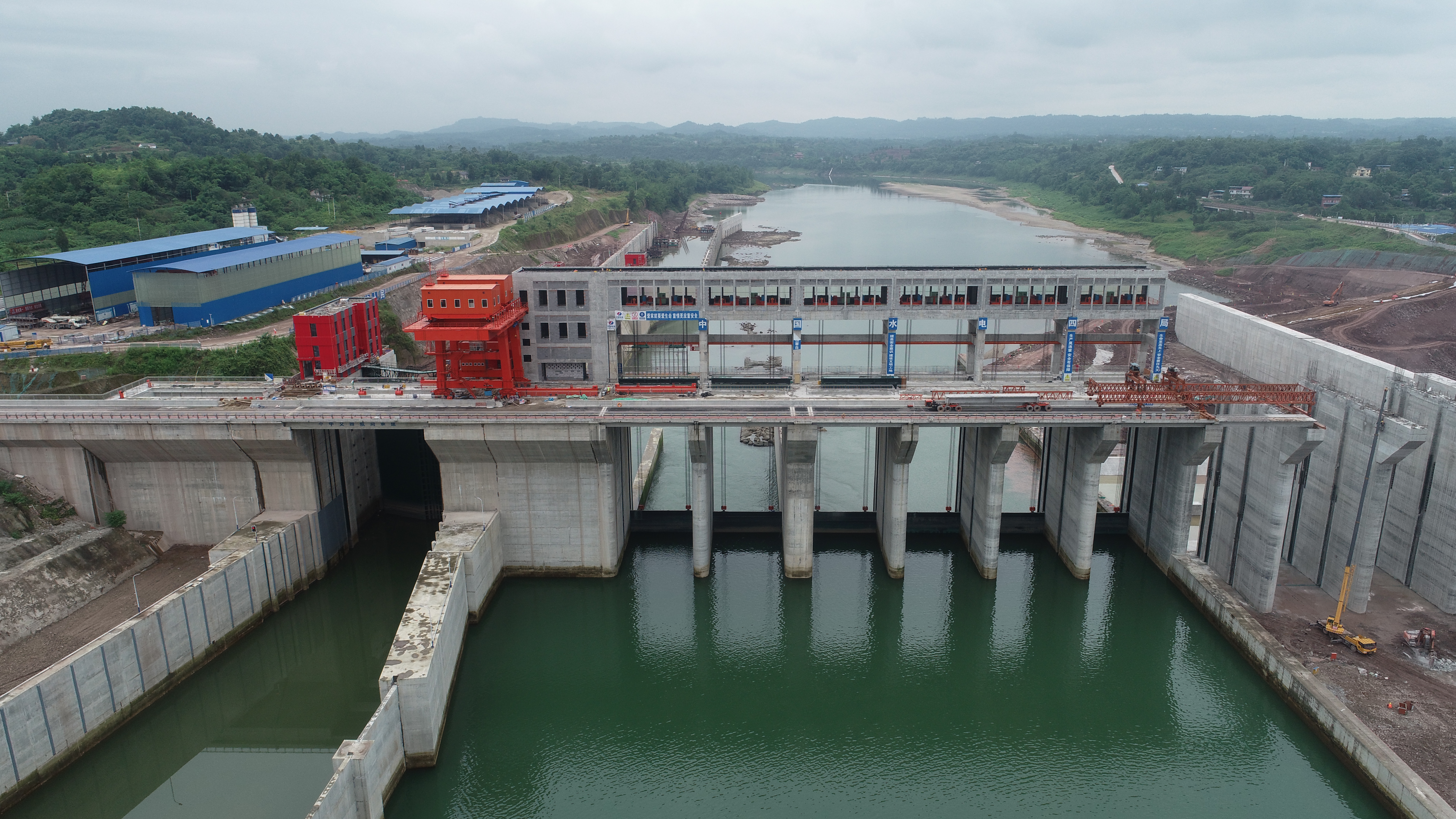 10-16金塘沖水庫八孔弧門成功吊裝